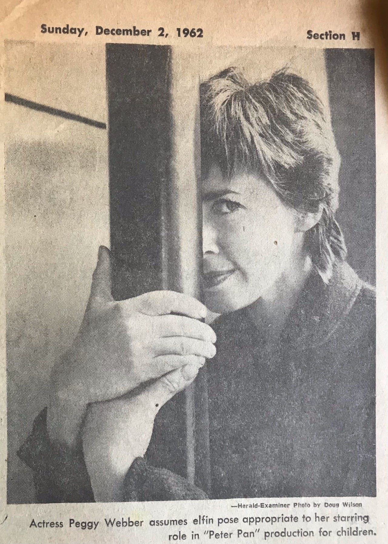 Peggy Webber: He would ask me if I thought it was good for him. We went up into the mountains to a cabin, I don’t know if they owned it or just rented it, but he and his wife and his children would go up there and they would invite us to come up and we’d rent a cabin. I had just finished doing Peter Pan in the theater [at 1735 Vine Street] where I had been flying and doing a lot of exercises. The day after it closed, I bent over to pick up a fork and something in my back went “boing!”. So I was in great pain, but I had to drive the children up to this lodge.